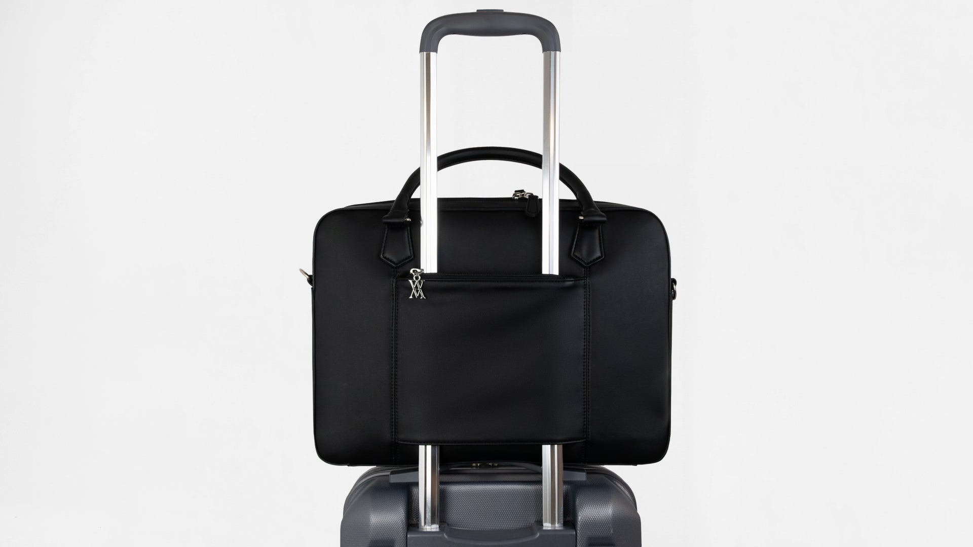 Unlike other briefcases, Berlin features a pocket which slides over your suitcase handle and can keep your passport safe.