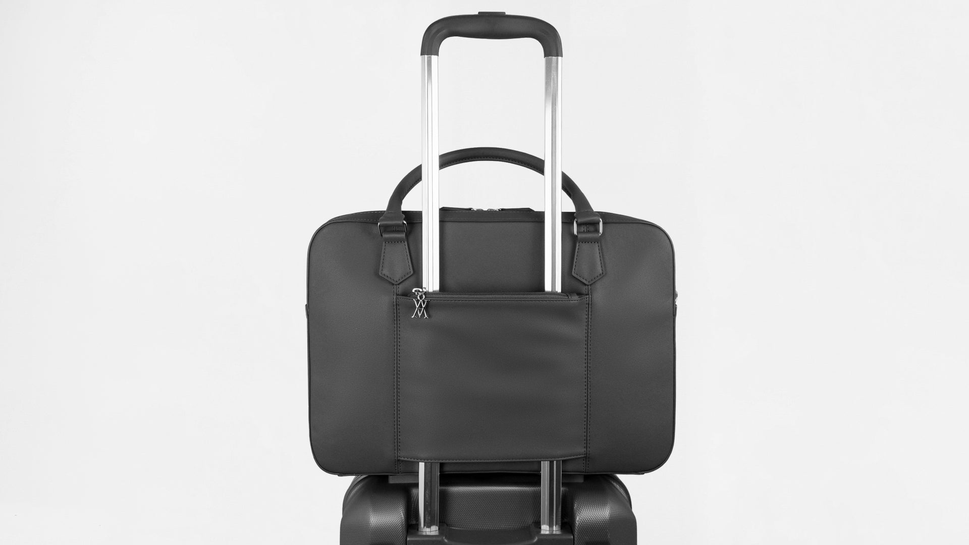 Unlike other briefcases, Berlin features a pocket which slides over your suitcase handle and can keep your passport safe.