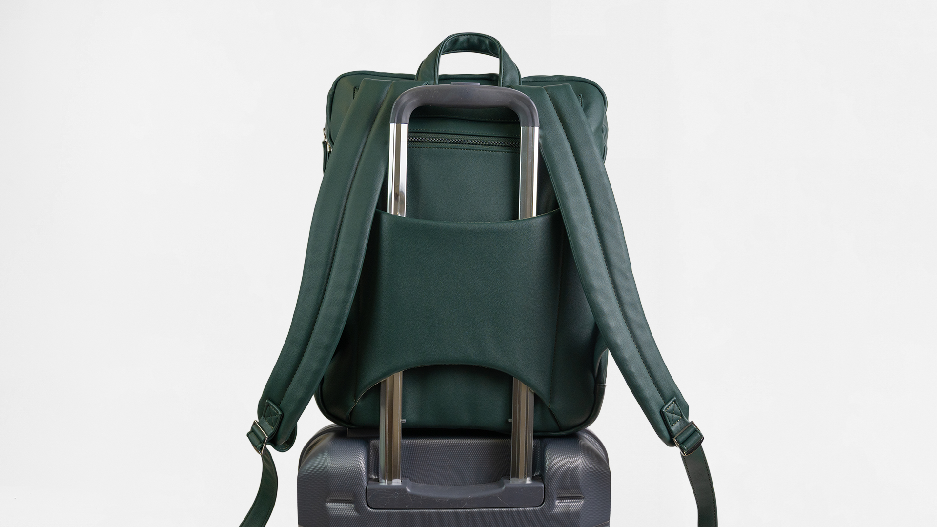 Unlike other backpacks, Cali features a strap which slides over your suitcase handle and a hidden pocket that can keep your passport and essentials safe.