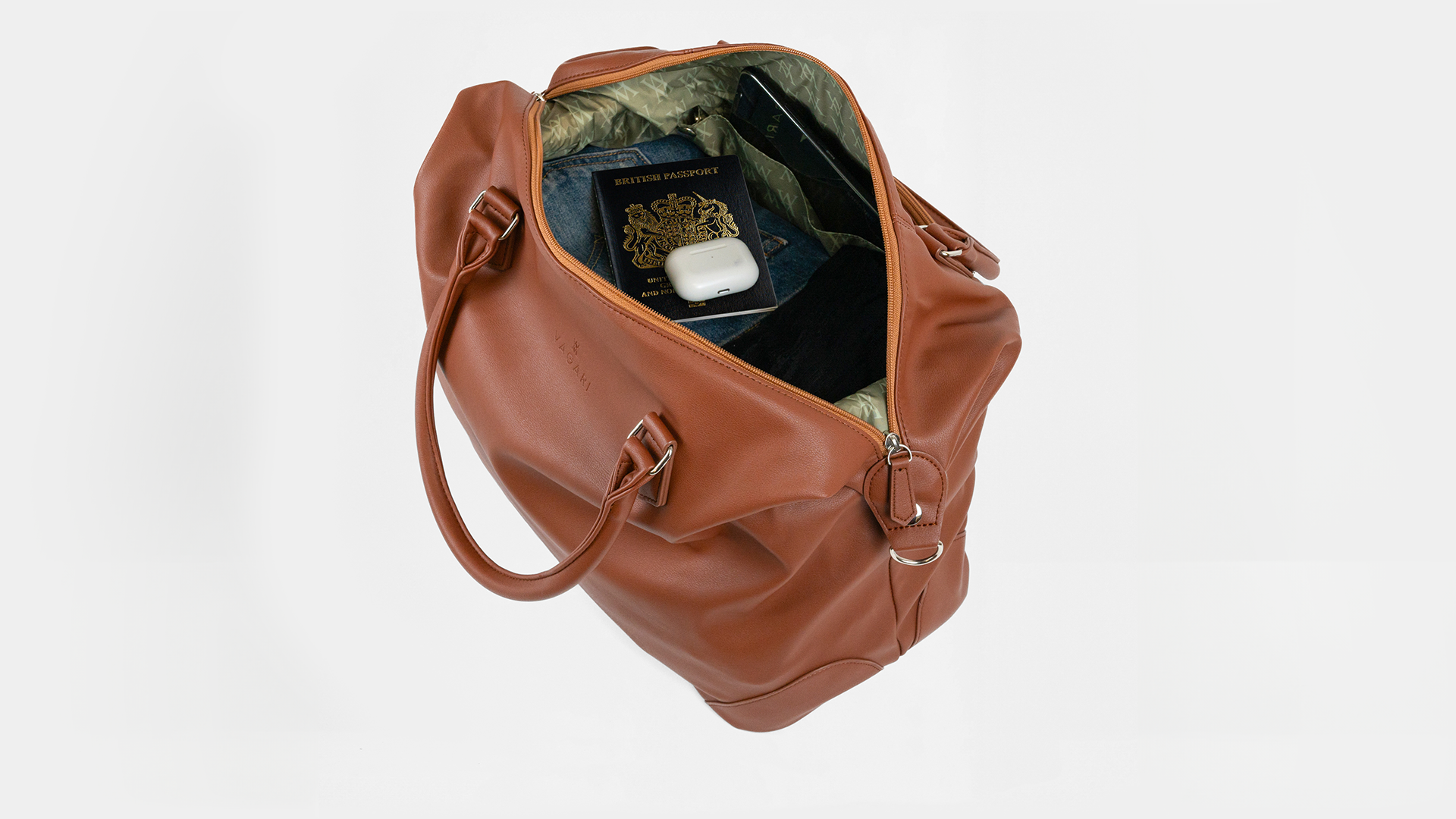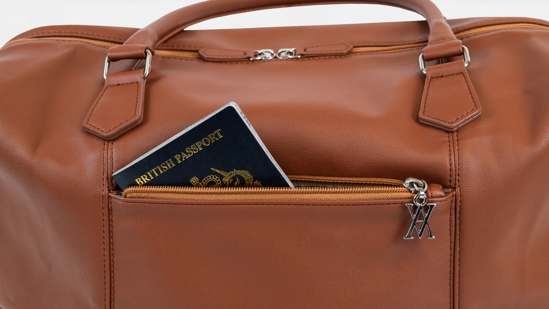 The Lisbon weekender features a strap which slides over your suitcase handle and a hidden pocket that can keep your passport and essentials safe.