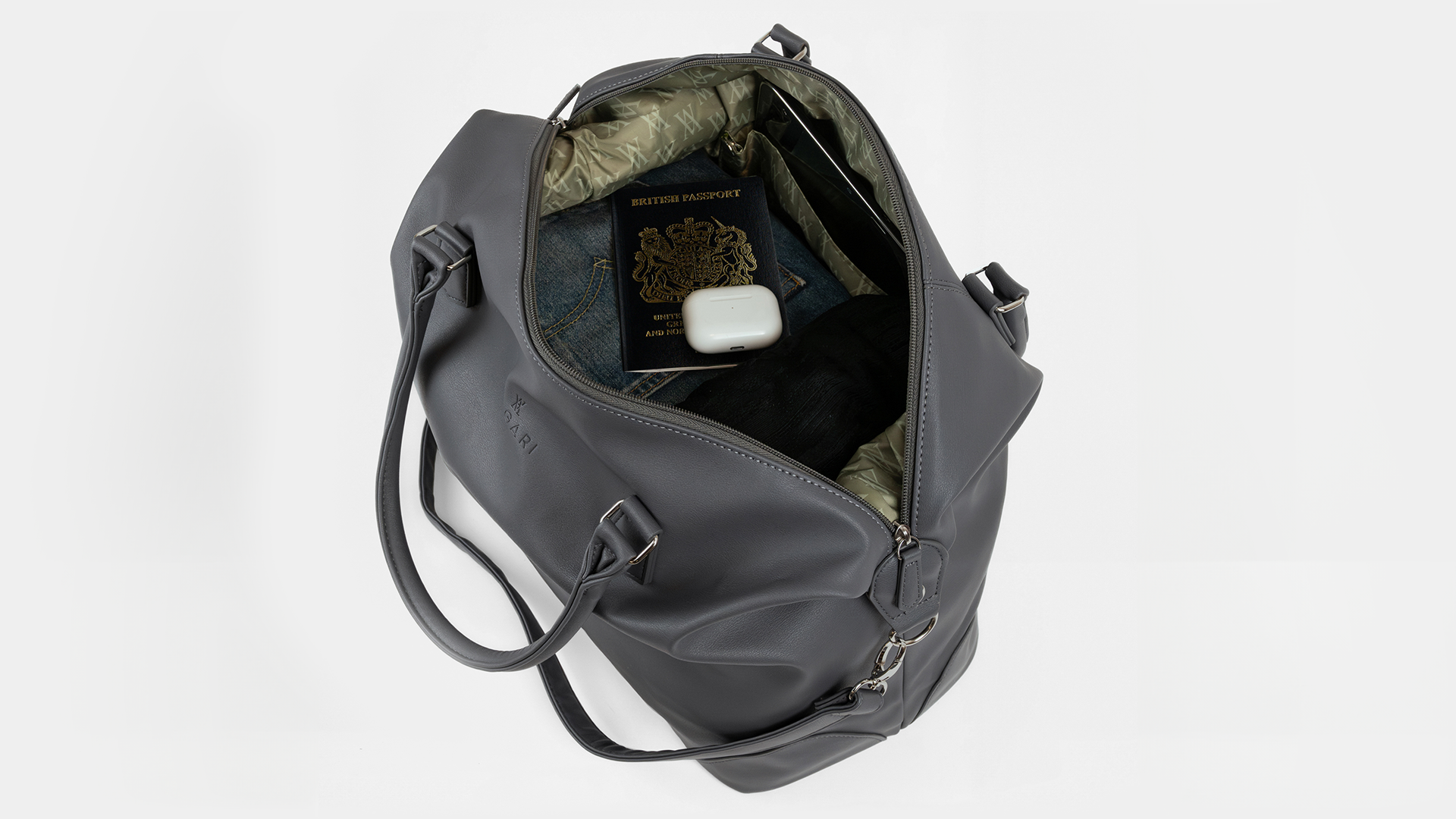 The Lisbon weekender features a strap which slides over your suitcase handle and a hidden pocket that can keep your passport and essentials safe.