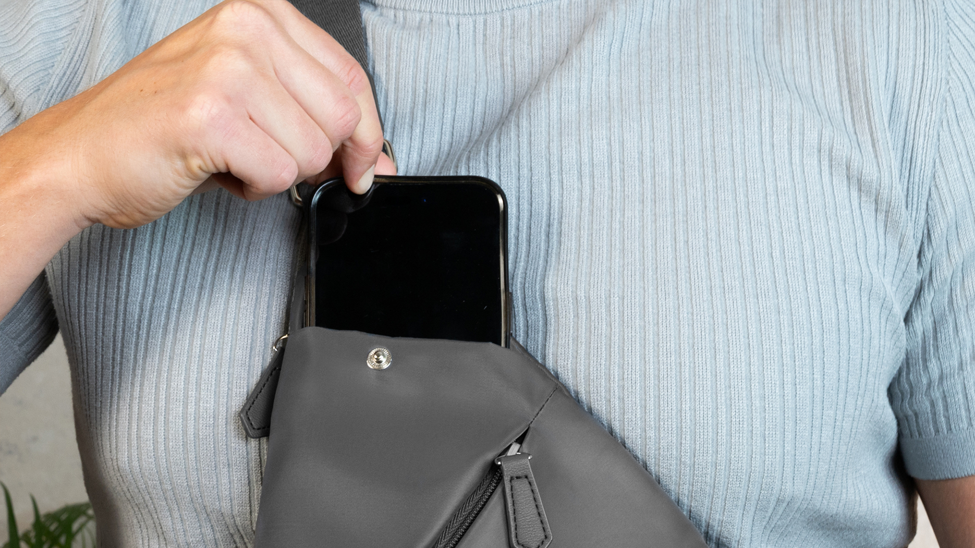 The London bag features a specialised section for your mobile device, ensuring it stays close and safe. Positioned at the top of the bag, the phone compartment is safeguarded by a clip and accommodates phones with screens up to 6.7 inches.