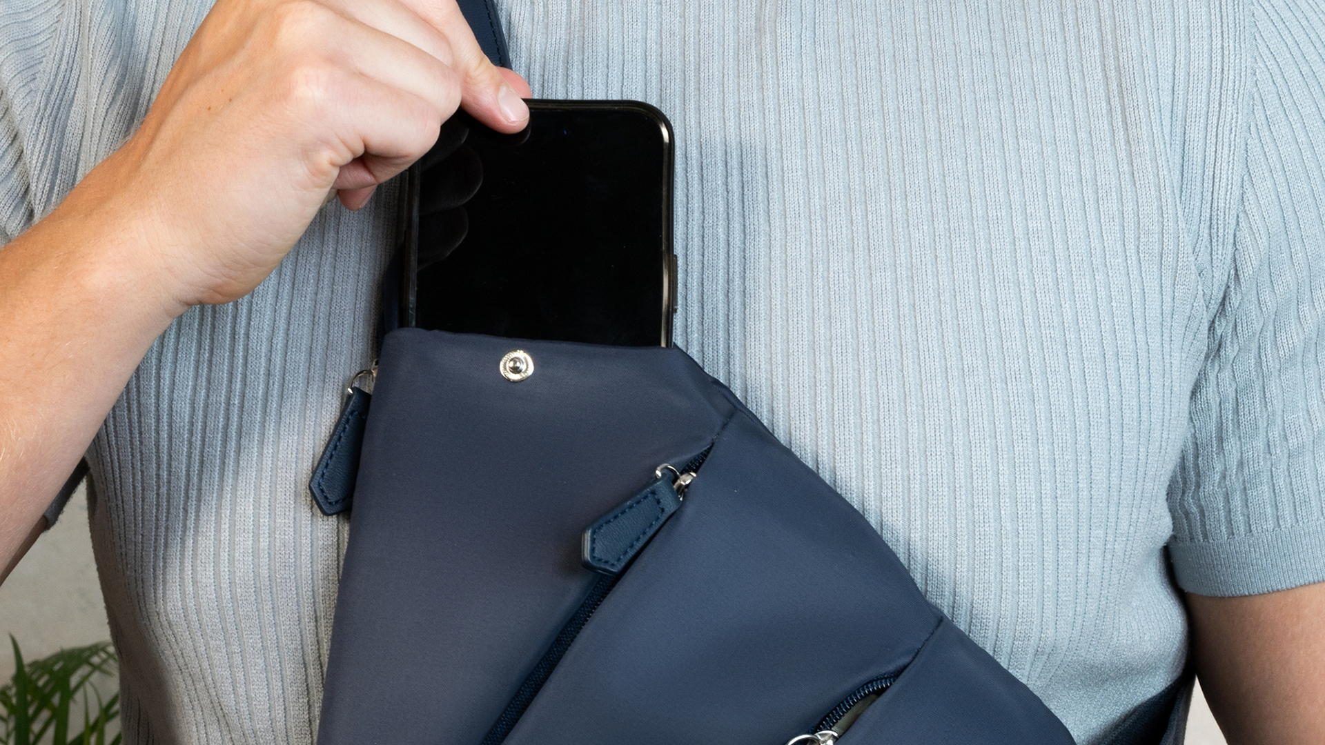 The London bag features a specialised section for your mobile device, ensuring it stays close and safe. Positioned at the top of the bag, the phone compartment is safeguarded by a clip and accommodates phones with screens up to 6.7 inches.